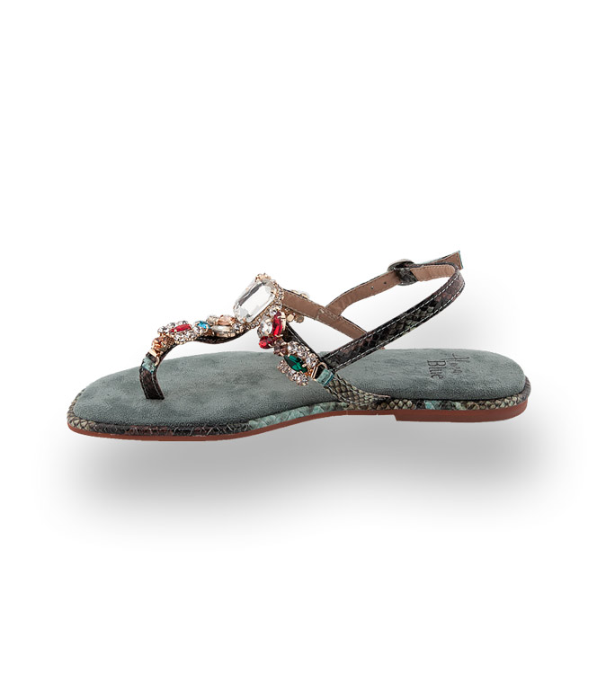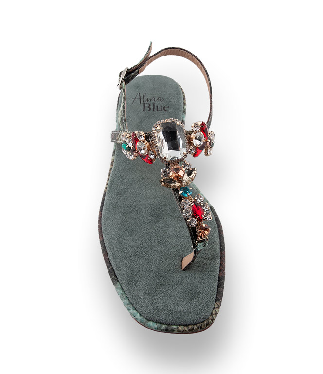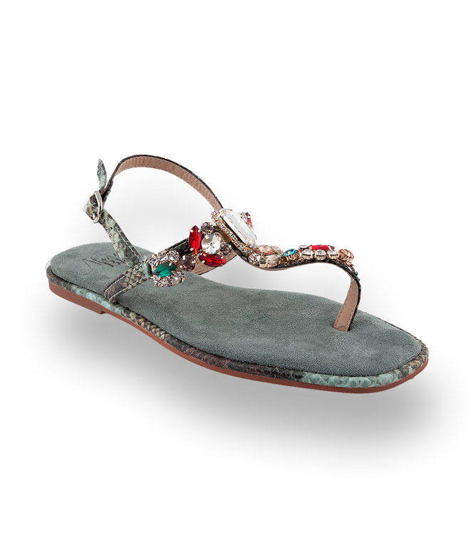Alma en Pena Sandale- Dianette in grün mit bunten Schmucksteinen