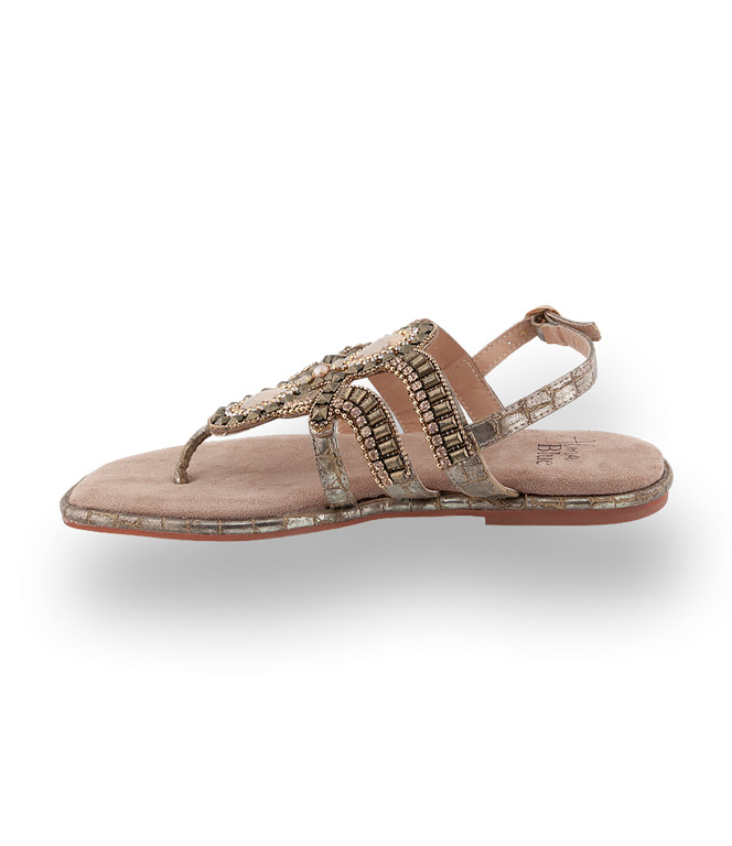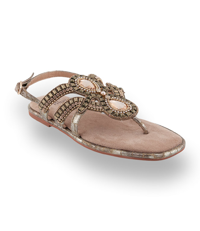 Modisches Detail sind die Schmucksteine und die Riemchenanordnung