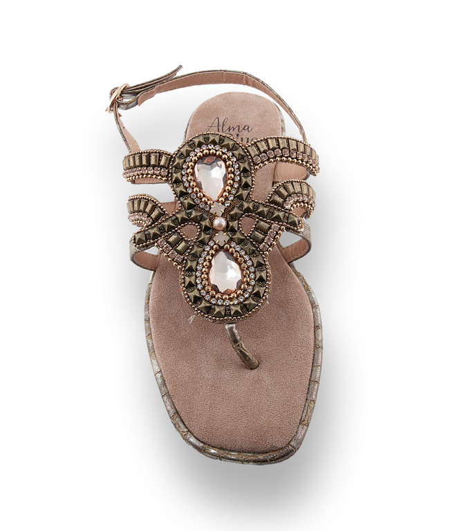 Alma en Pena Sandale - Dianette in goldfarben mit Schmucksteinen