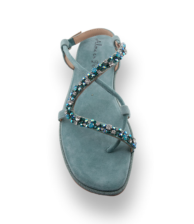 Alma en Pena Sandale - Dianette in türkis mit Schmucksteinen