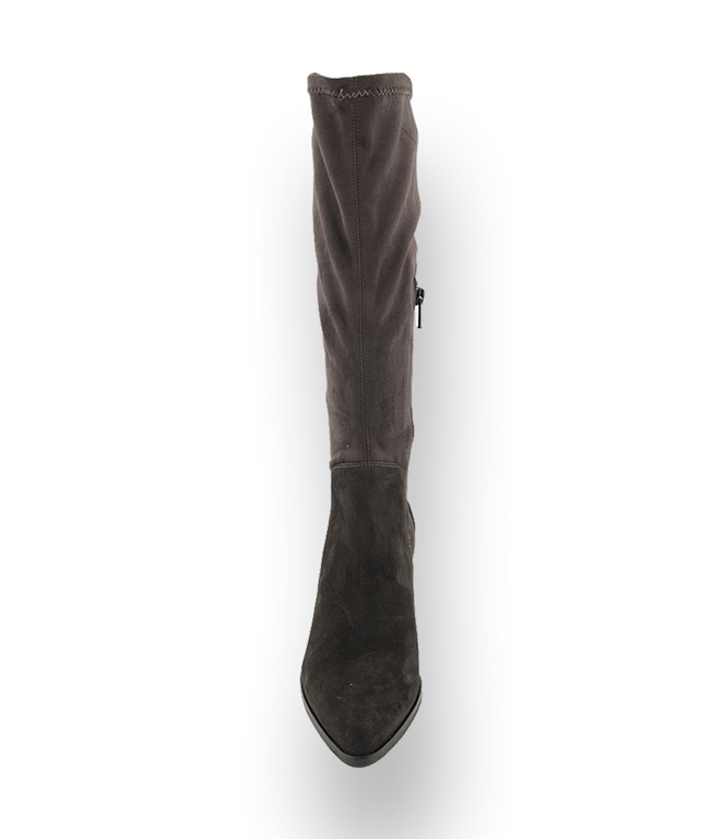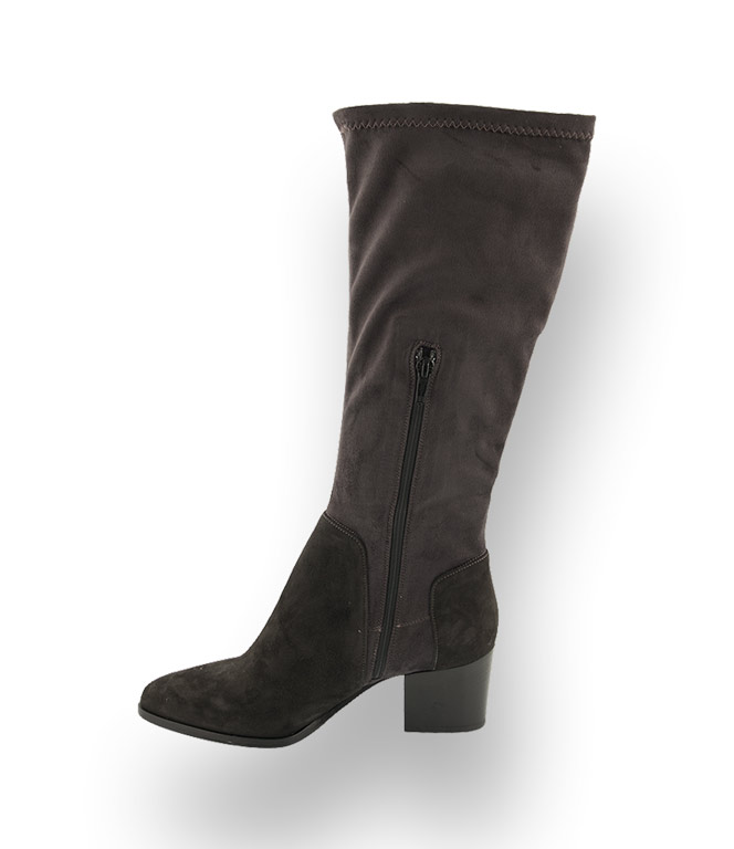 Angelo Bervicato bringt den Stiefel mit einem halbhohen Schaft und einen bequemen trendigen 5cm Blockabsatz. Immer und überall einsetzbar. Der eng anliegende Stretchschaft und der spitze Leisten wirken besonders edel zu Rock und Kleid. Der samtige Touch des grauen Velourleders kommt bei diesem Stiefel perfekt zur Geltung. Schöne Qualität bestes Handwerk. Das Vorderblatt ist mit Leder gefüttert und die Gummisohle lässt auch Regentage zu. Ein kurzer Reißverschluss an der Innenseite sorgt für einen angenehmen Schlupf.