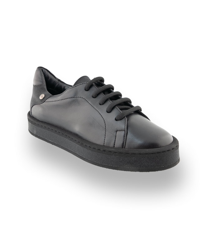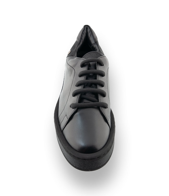 Schwarze Sneaker von Attilio Giusti Leombruni, lassen sich immer und überall integrieren und beweisen Alltagstauglichkeit. Softe Plateausohle aus sehr leichtem Kautschuk, Glitzer an Ferse, Sohle und Zunge ergeben interessante Looks. Grobes Schuhwerk, vorallem in Schwarz zeichnet ein romantisch-düsteres Modebild. Zu Leder, Spitze, Strick wird der Sneaker aus traumhaft weichen Ziegennappa zum idealen Begleiter.