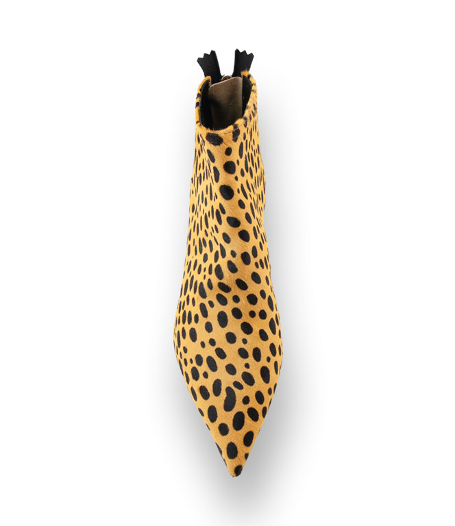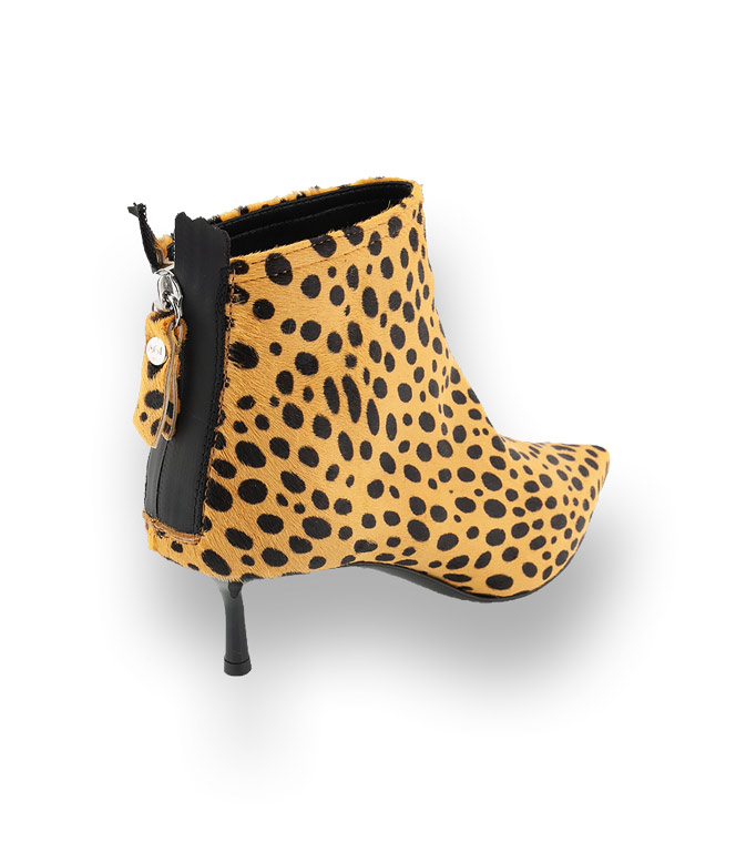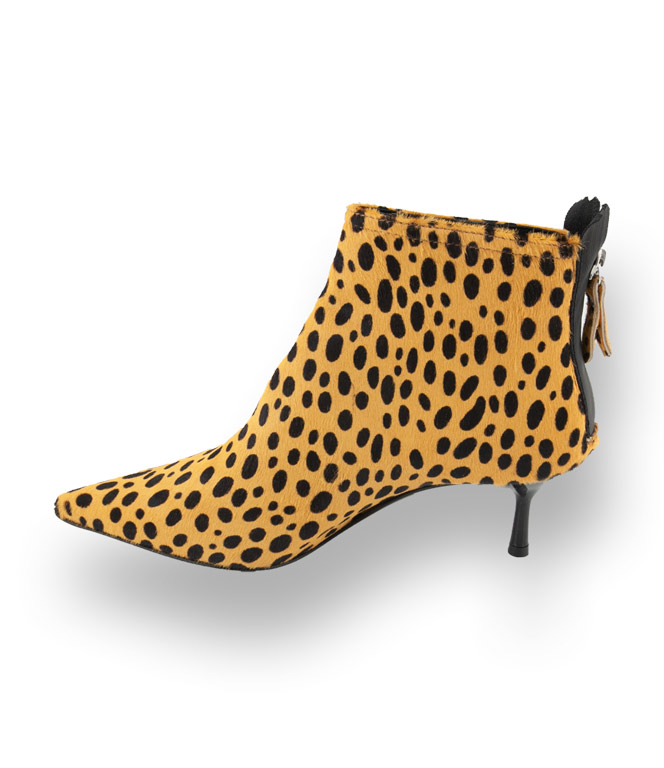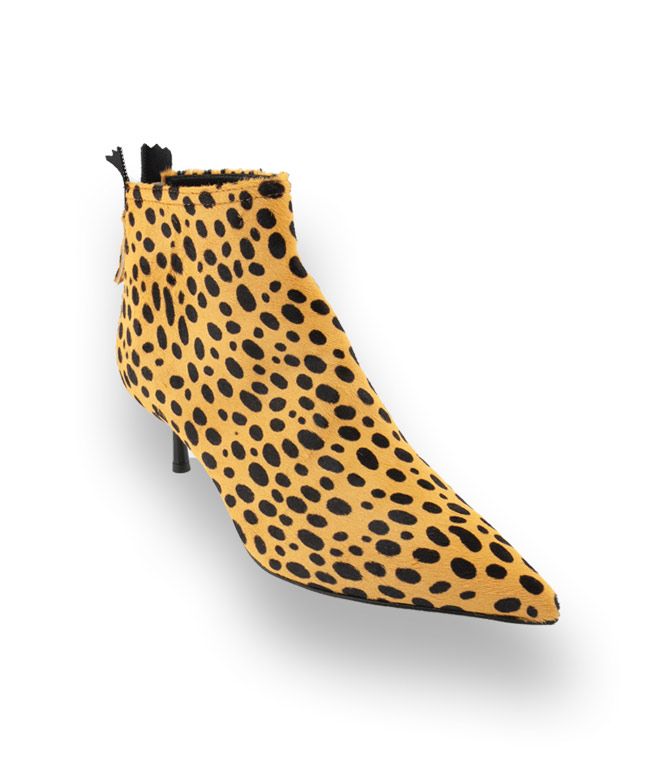Gönnen Sie sich die gelb/schwarze Stiefelette von AGL aus Fell im Dalmatinerlook. Selbst im 5cm hohen Stilettoabsatz setzt sich der Aufdruck fort. Ein stilvoller alltagstauglicher Schuh der keine Wünsche offen lässt. Hochwertiges Futterleder und eine Lederlaufsohle mit einem rutschsicheren Gummieinsatz sind wichtige Details die enormen Tragekomfort bieten. Ein Mode-Allrounder steht auf der Wunschliste. Powern Sie mit diesem begehrenswerten Begleiter.