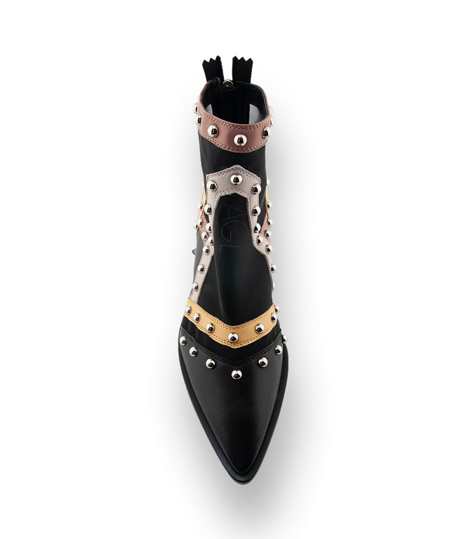 AGL Stiefelette in schwarz bunt mit Nieten und Meshmaterial
