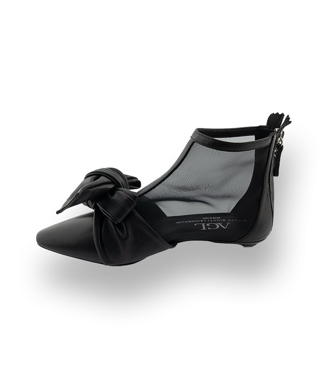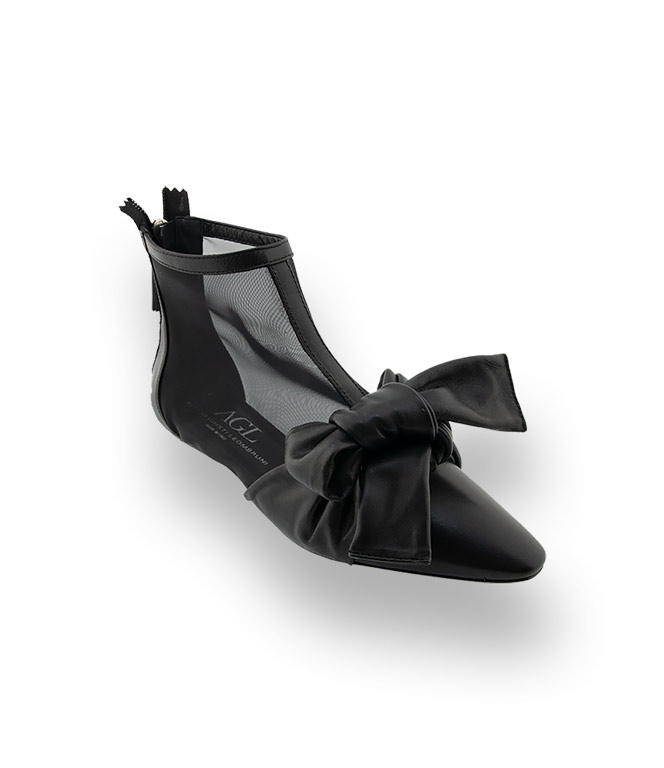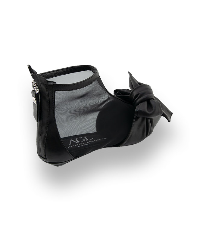 Lederschleife und Transparenz haucht dem Ankle-Bootie eine Portion Glamour ein. Die feminine Stiefelette von AGL - Attilio Giusti Leombruni eignet sich fürs Meeting im Büro und für den abendlichen Cocktail. Ein charmantes Accessoire ist von hoher Handwerkskunst geprägt. Aus weichem Ziegennappa mit schwarzem Mesh und einem Reißverschluss an der Ferse werden Sie von AGL verwöhnt. Kappe und Ferse ist mit Leder verstärkt und eine Lederlaufsohle mit rutschsicheren Gummieinsatz verleihen der Stiefelette höchsten Tragekomfort.