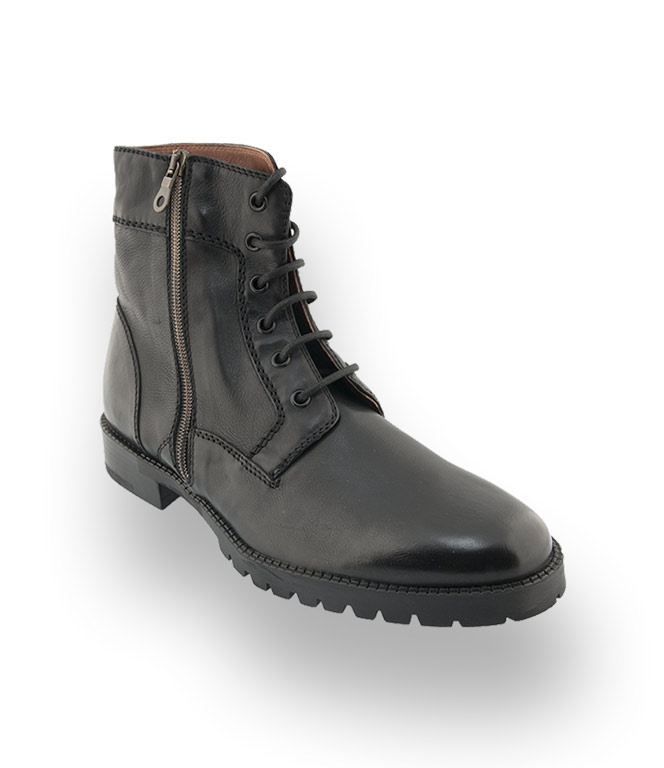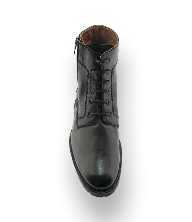 Schnürstiefelette in schwarzem butterweichem Kalbsleder von Bello.