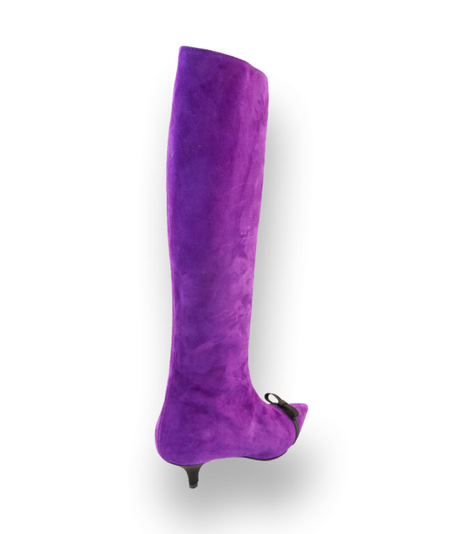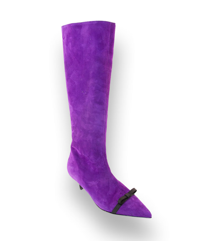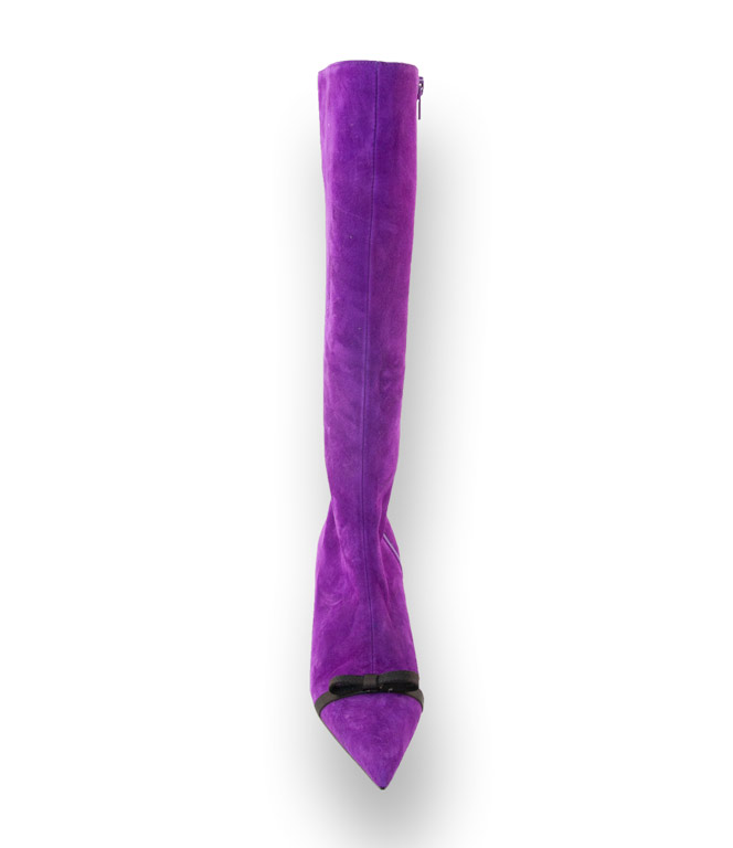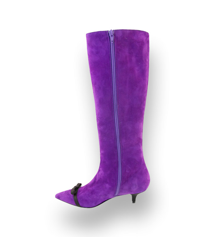 Bianca Di Stiefel in lila Veloursleder mit schwarzer kleiner Schleife