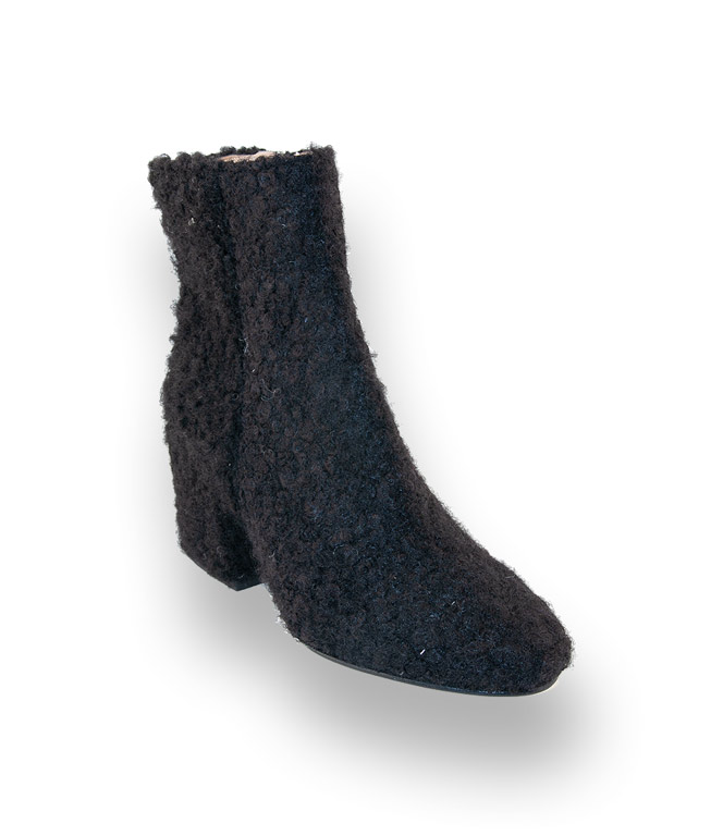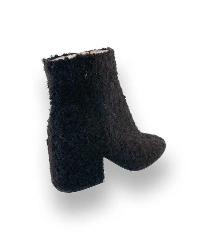 Die neuen Looks sind eine gelungene Mischung aus voluminösen Anzügen, großzügig geschnittene Mäntel mit Hahnentrittmuster. Warum nicht Stiefeletten aus Schafswolle im wuscheligen Design von BIANCA DI. Einfach GRANDIOS in schwarz mit einem modischen 7cm hohen Absatz und einem mandelförmigen Leisten, damit toppen Sie jedes Outfit. Eine Lederdecksohle sorgt für angehmen Tragekomfort und ein Reißverschluss für den schnellen Einstieg.