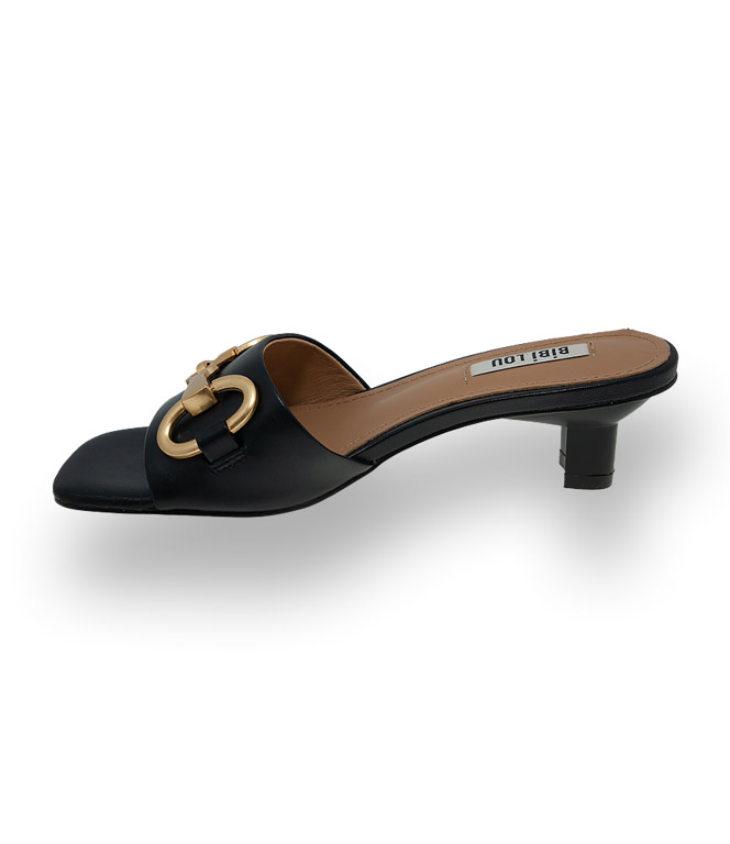 Bibi Lou schwarze Pantolette mit Metallschmuck