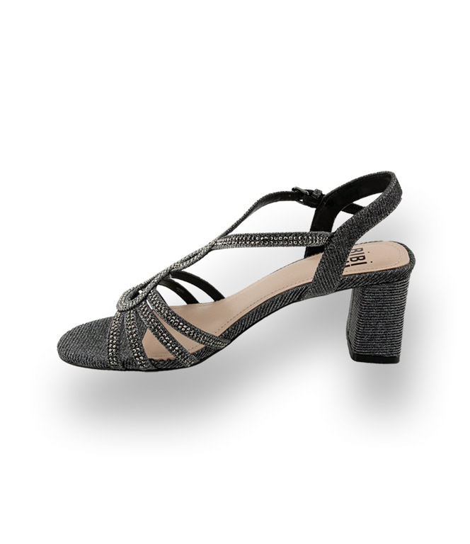 Altsilbernes Lame und edler Strass, sorgen für einen bühnenreifen Auftritt. Die zierliche Riemchenlösung, mit verschlungenen Ornamenten im T-Spangenbereich, sorgen für einen Wow-Effekt und sicheren Halt. Weiches Lederfutter garantiert ein unbeschwertes Tragevergnügen. Der trendige seitlich schmälere, blockige Absatz bietet sicheren Halt und unterstreicht den glamourösen Look.