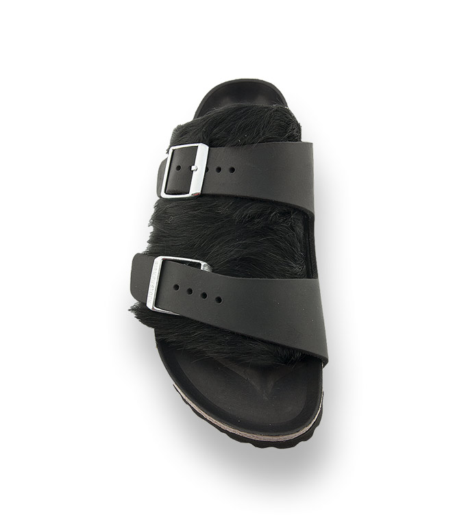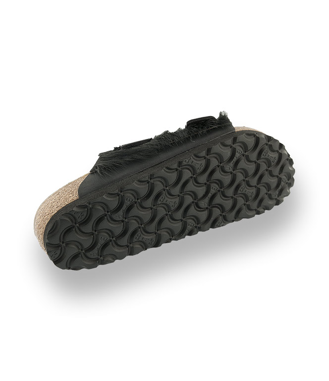 Birkenstock Arizona Pantolette schwarz mit Kuhfell