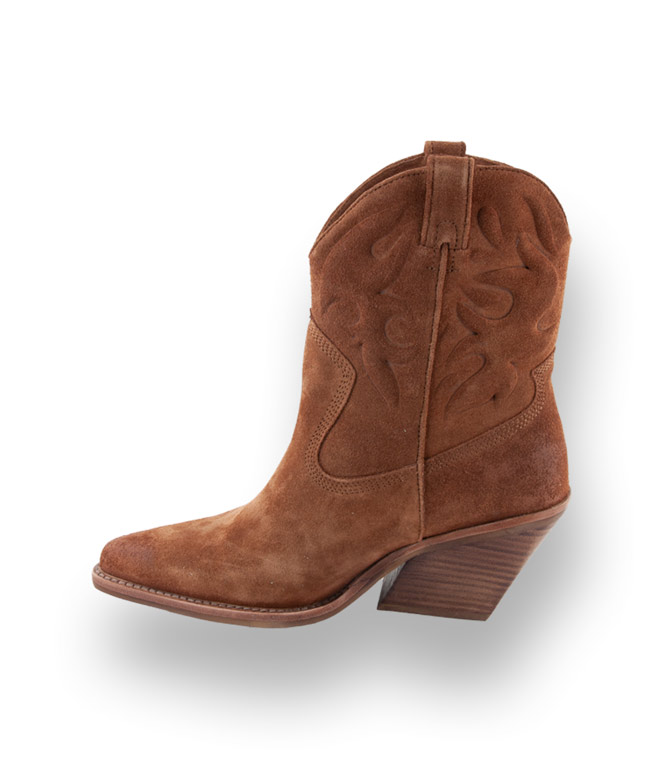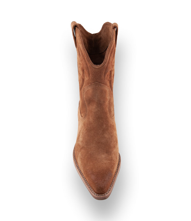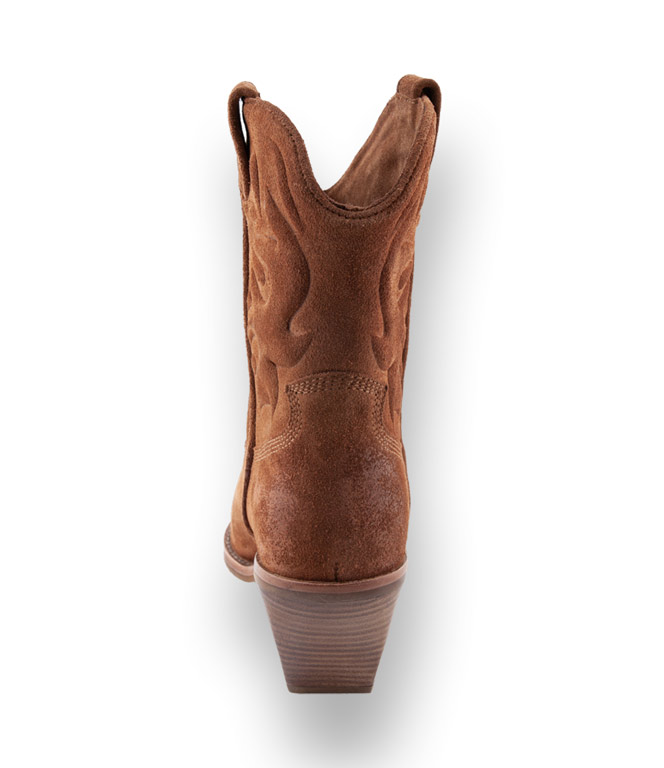 Ein Trendthema, dass Cowboy - Stiefeletten in den Fokus rücken. Baumwollkleider, karierte Hemden, bestickt und gerüscht. Naturfarbene Westernstiefeletten von Bronx sind die richtigen Begleiter für ihren neuen Streetstyle. Mit Lederfutter und Kunststoffsohle, einem 6cm hohen konischen Absatz und Ornamente am Schaft machen den Look perfekt.