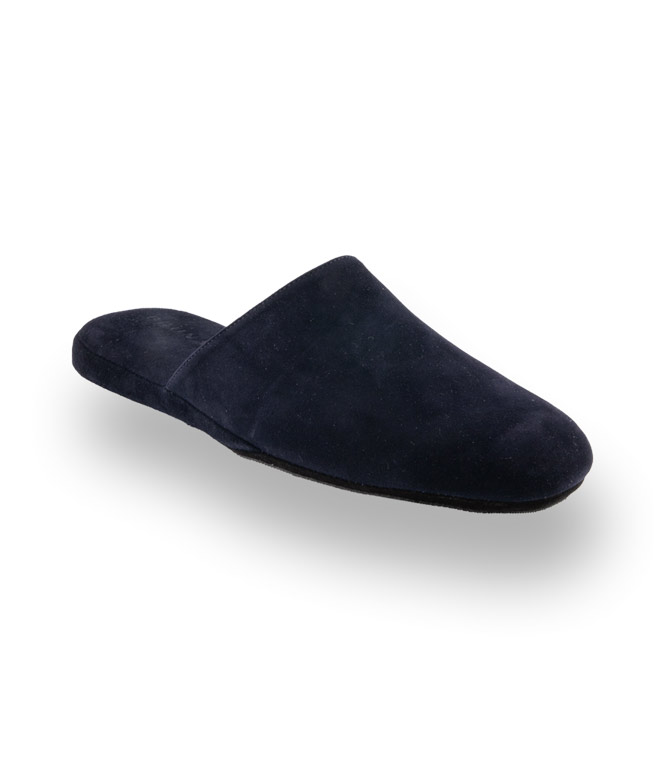 Der Pantoffel ist aus blauem veloursleder gefertigt. Die gepolsterte Decksohle und der kleine Keil sorgen für ein Wohlfühlerlebnis. Die flexible Chromledersohle hat Gummieinsätze im Absatz- und Sohlenbereich. Rutschsicherheit ist somit garantiert.