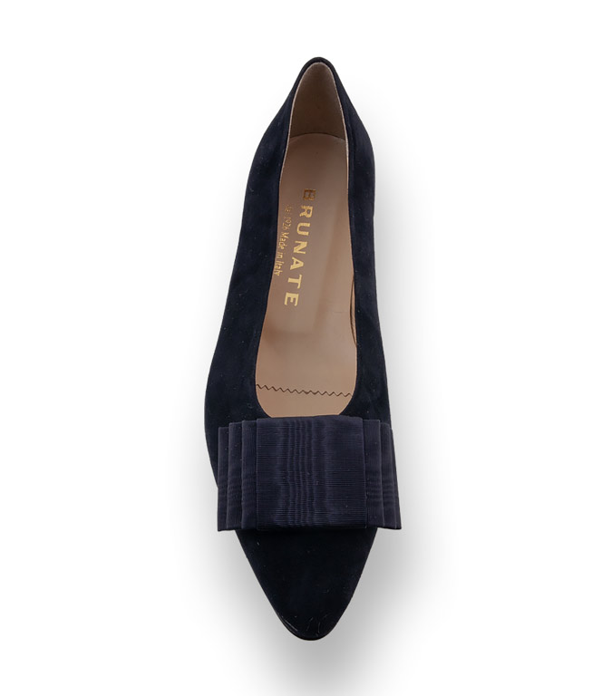 Dunkelblaues Veloursleder eine effektvolle Moiréschleife und die elegante spitze Kappe veredelt ihr Outfit auf stilvolle Weise. Feinstes Futterleder und eine Ledersohle begünstigen den Tragekomfort. Modischer Chic aus Italien.