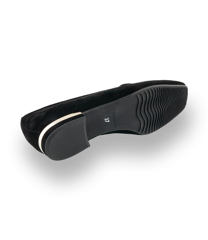 Schick und außergewöhnlich präsentiert sich der schwarze Slipper von Brunate aus Veloursleder.