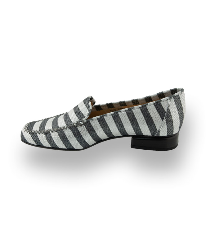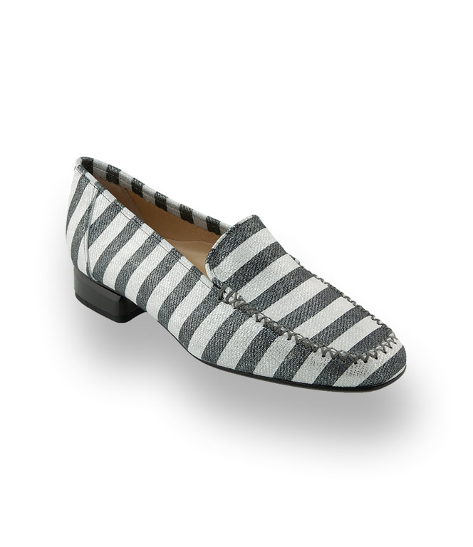 Weich und geschmeidig aus Kalbsleder im modisch gestreiften Metallic-Print. So wird der Mokassin von Brunate zum begehrten Begleiter mit hohem Wohlfühleffekt. Silberfarben mit Anthrazit ist eine charmante Kombination die sich problemlos integrieren lässt. Ein hochwertiges Futterleder und ein angenehmes Fußbett überzeugen Kunden mit höchsten Ansprüchen. Eine Lederlaufsohle ist besonders angenehm an heißen Tagen.