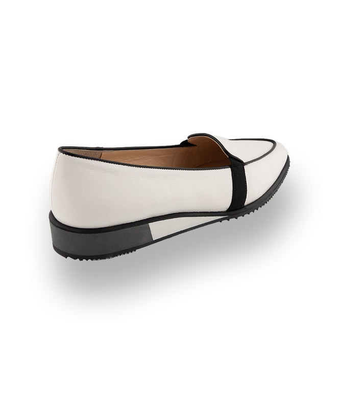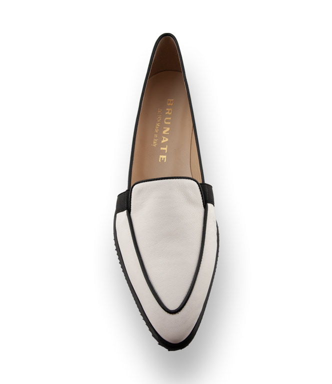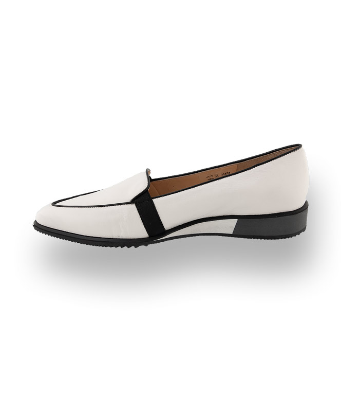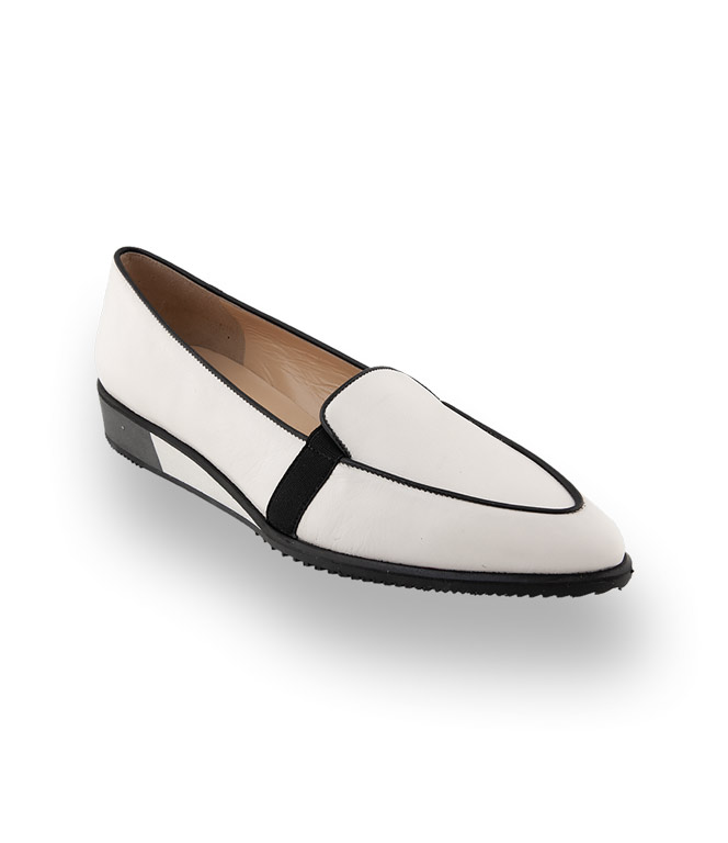 Sportlich aber mit femininen Charme präsentiert sich der Slipper von Brunate. Aus traumhaft weichem Ziegennappa und das Farbduo offwhite-schwarz sorgt für optische Wirkung. Ein federleichter Keil mit flexibler Profilsohle unterstützt den Komfort. Feinstes Lederfutter, seitliche Elasthanbänder erleichtern den Einstieg und die schwarze Ledereinfassung komplettieren den Style.