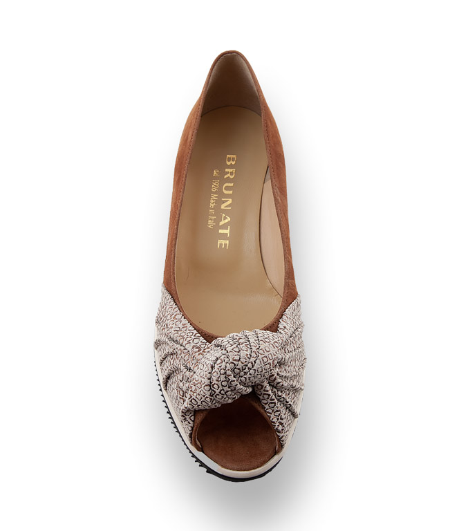 Brunate - Peeptoe in braun velours mit Keilboden