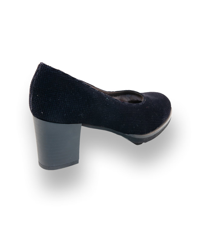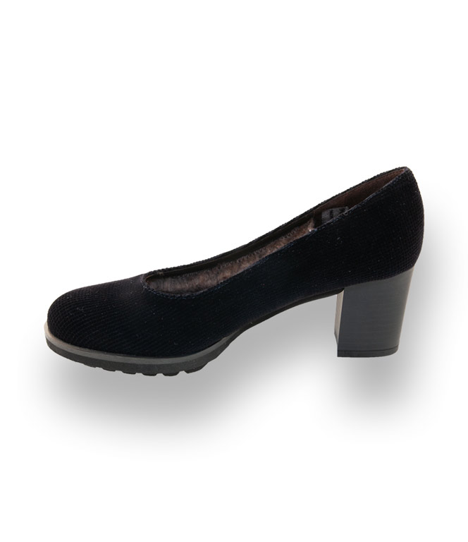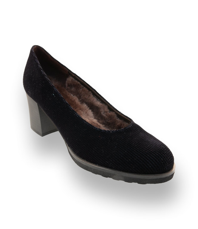 Edles Texmaterial in tiefem dunkelblau mit Waffelprint, vermittelt feminine Eleganz. Das kuschelige Lammfellfutter trägt nicht auf und verwöhnt ihre Füße. Das federleichte, flexible Plateau, in Wellenoptik, misst 1,5 cm und wird mit einem unempfindlichen Absatz von 6 cm komplettiert. Der schicke Pumps streckt das Bein und passt wie angegossen.