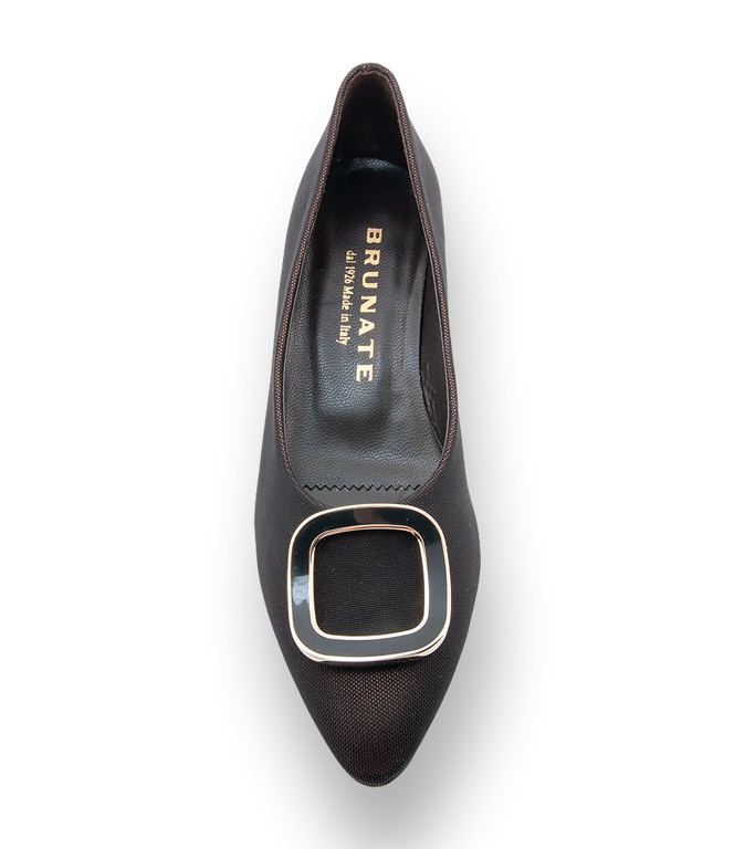 Schick und außergewöhnlich präsentiert sich der braune Pumps von Brunate aus metallic-schimmernden Textil. Eine dekorative Spange ziert das edle Modell. Hochwertiges Lederfutter und eine flexible rutschsichere Gummilaufsohle sowie Spiegeleffekt am 3cm hohen Absatz vervollständigen das italienische Design. In spitz zulaufender Leistenform und ein angenehm weiches Lederfußbett garantieren Bequemlichkeit. BRUNATE Made in Italy.
