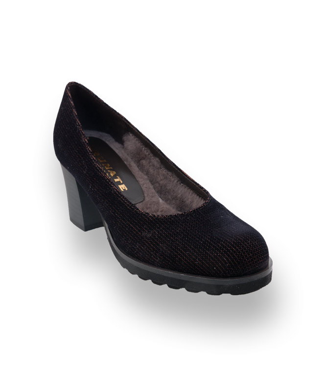 Brunate Pumps in dunkelbraun velours (Texmaterial) mit Lammfellfutter