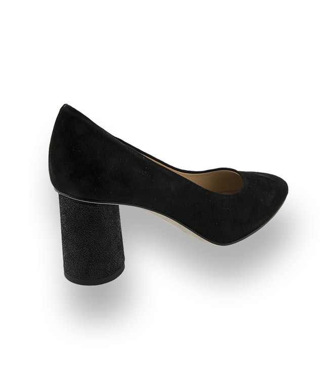 Die spitze Form in schwarzem Velour wird mit einem effektvollen runden Absatz in schillerndem Metallicvelour gekonnt ergänzt. Der Pumps ist ein "Must-Have" für die anspruchsvolle stilsichere Frau und setzt ihre Beine gekonnt in Szene. Für's Büro oder zum eleganten kleinen Schwarzen mit diesem eleganten Pumps veredeln sie jedes Outfit.