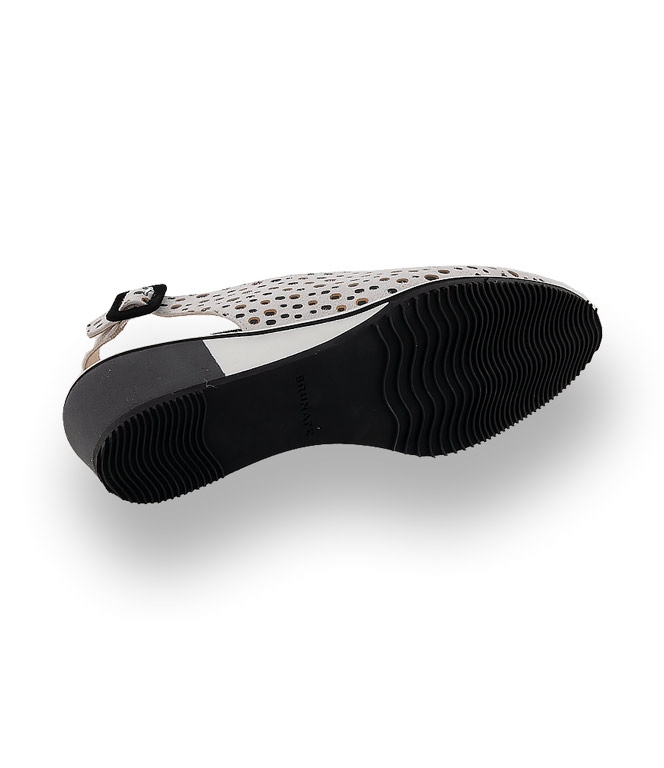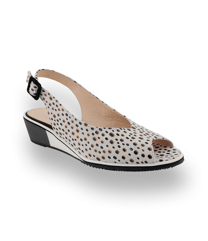 Brunate das italienische Label verwendet erstklassiges Material in bester Verarbeitung und garantiert Bequemlichkeit. Ein federleichter 3,5 cm hoher Keil mit flexibler Gummisohle unterstützt den Tragekomfort. Auf dem Veloursleder in offwhite zeigen sich gelackte, schwarz-goldene Pünktchen. Ein gefälliger Print der sich wunderbar kombinieren lässt. Auch für kräftigere Füße bestens geeignet. Gepolsterte Wellness zu allen Looks für unbeschwerte Stunden.