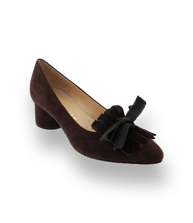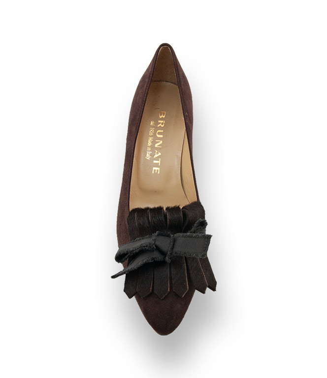Brunate Pumps braun velours mit Fransenlasche und Schleife