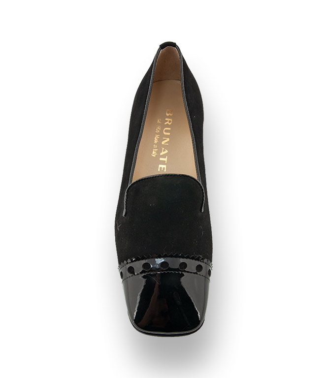 Brunate Pumps in schwarz velours mit Lackkappe & Karreeleisten