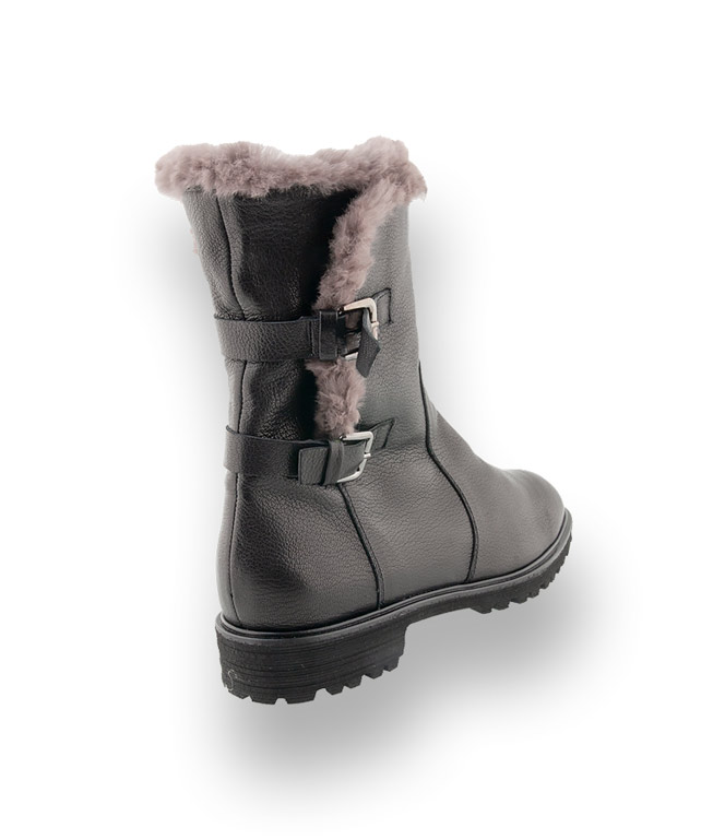 Frieren wird zum Fremdwort. Für kuschelige Wärme sorgt die schwarze Stiefelette von Brunate. Lammfellfutter, weiches Nappaleder und eine rutschsichere Gummilaufsohle garantieren höchsten Tragekomfort, auch an frostigen Tagen. Riemen und Schnallen zieren das Modell. Die Schafthöhe von 21cm ist perfekt. Werden Sie kreativ und spielen Sie mit ihrem Outfit. Ein Reißverschluss sorgt für einen angenehmen Einstieg. Auserlesene Materialien, hochwertige Verarbeitung und beste Qualität spricht für das italienische Label BRUNATE