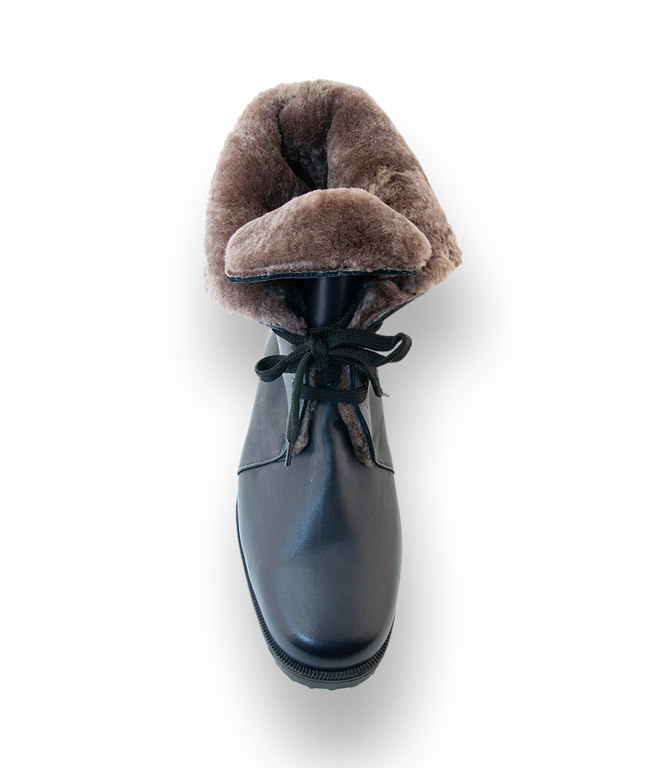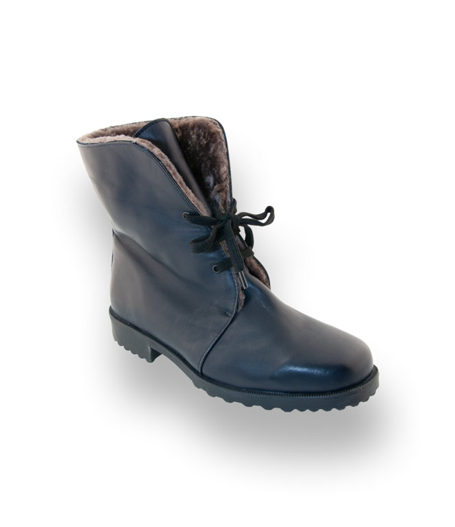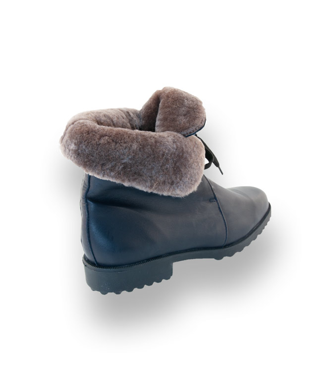 Brunate Schnürstiefelette in blau mit Lammfellfutter