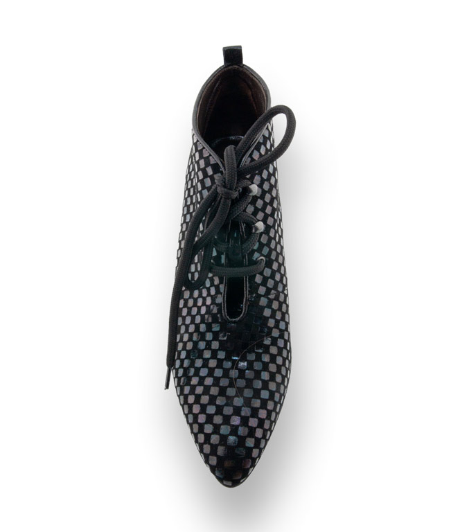 Ein modisches Accessoire mit hohem Kombinationspotential. Brunate verleiht der Schnürstiefelette durch individuellen Metallic-Print, leichter Schimmer in Regenbogenfarben auf schwarzem Veloursleder eine besondere Note. Weiches Lederfutter und eine flexible, rutschsichere Gummilaufsohle vervollständigen den Tragekomfort.
