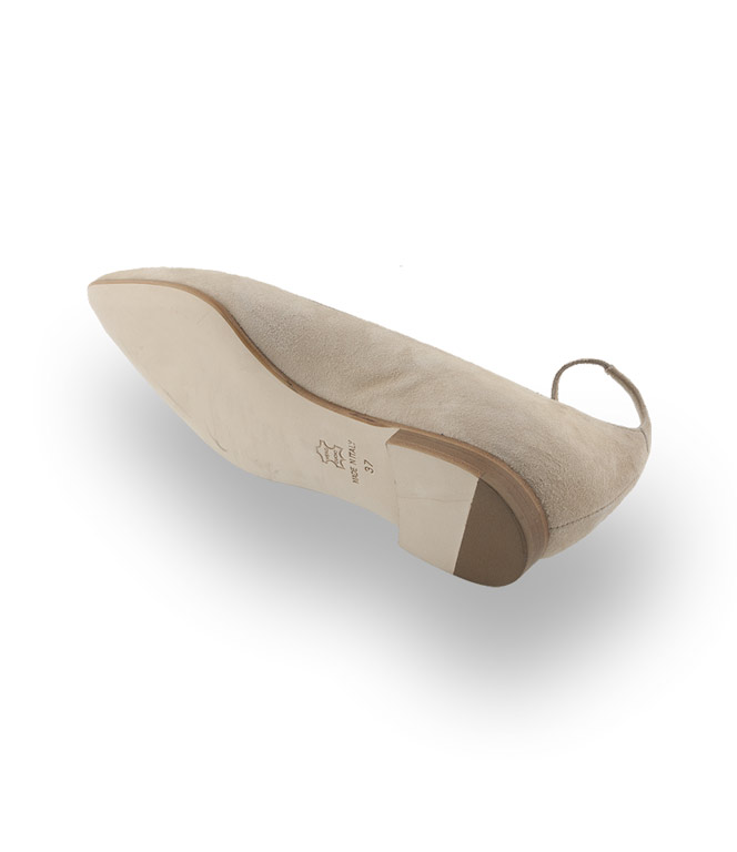 Caiman Schuhe spitzer Ballerina in hellbeige velours mit Fesselriemen