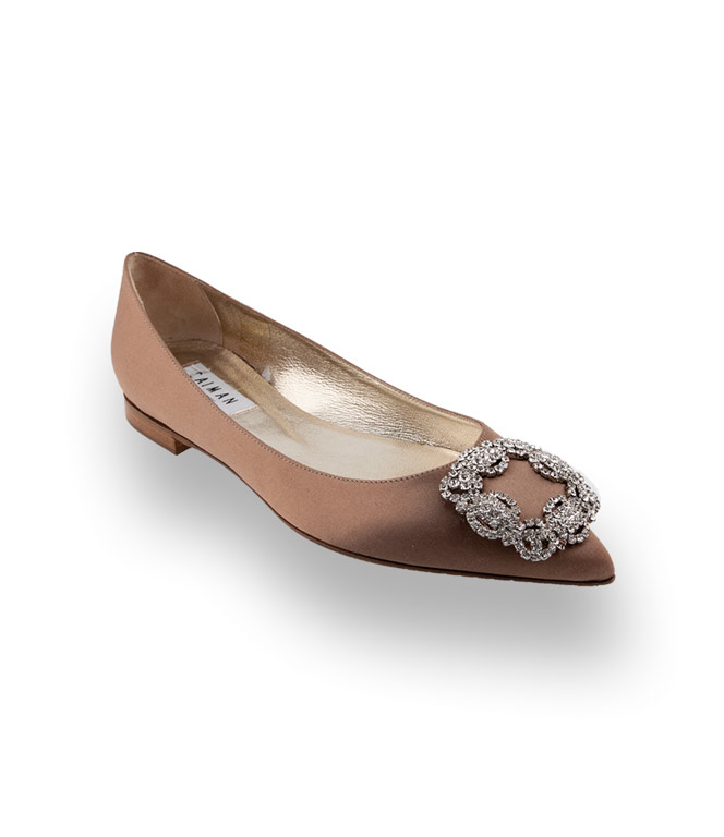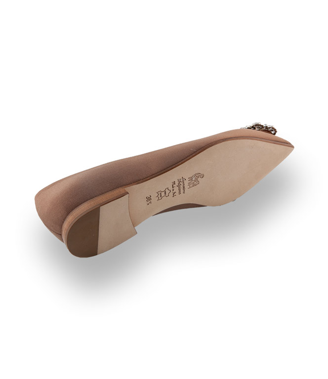 Caiman Ballerina in taupe Satin mit silberfarbener Brosche