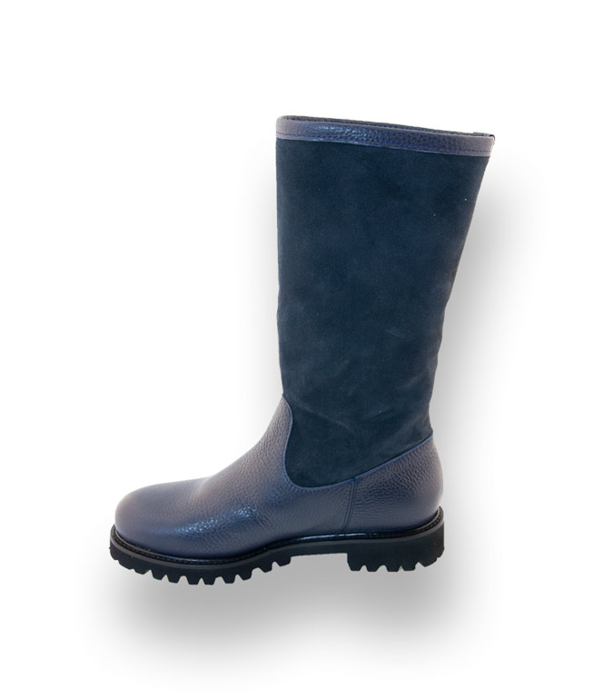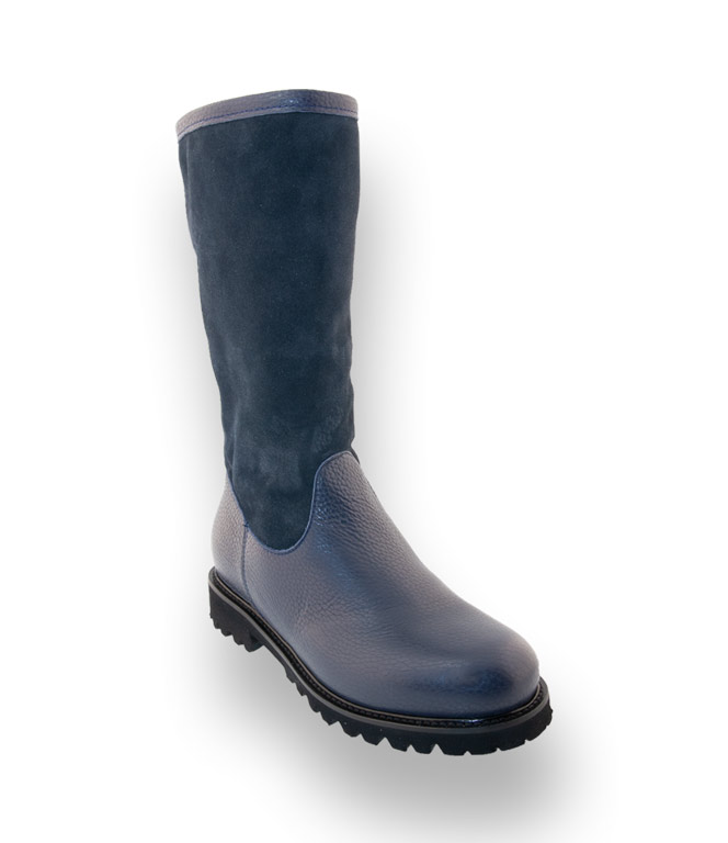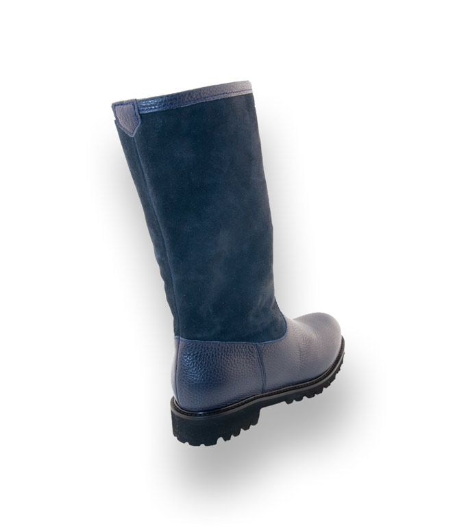 Caiman Stiefel - Lammfellgefüttert in blau Lederkombi