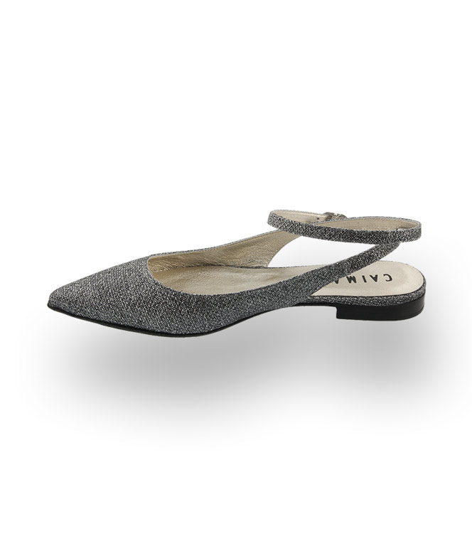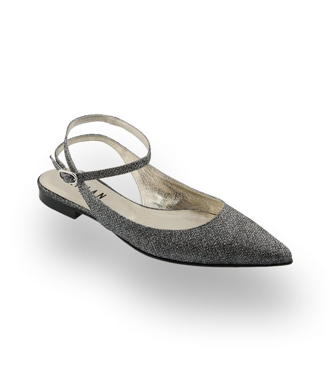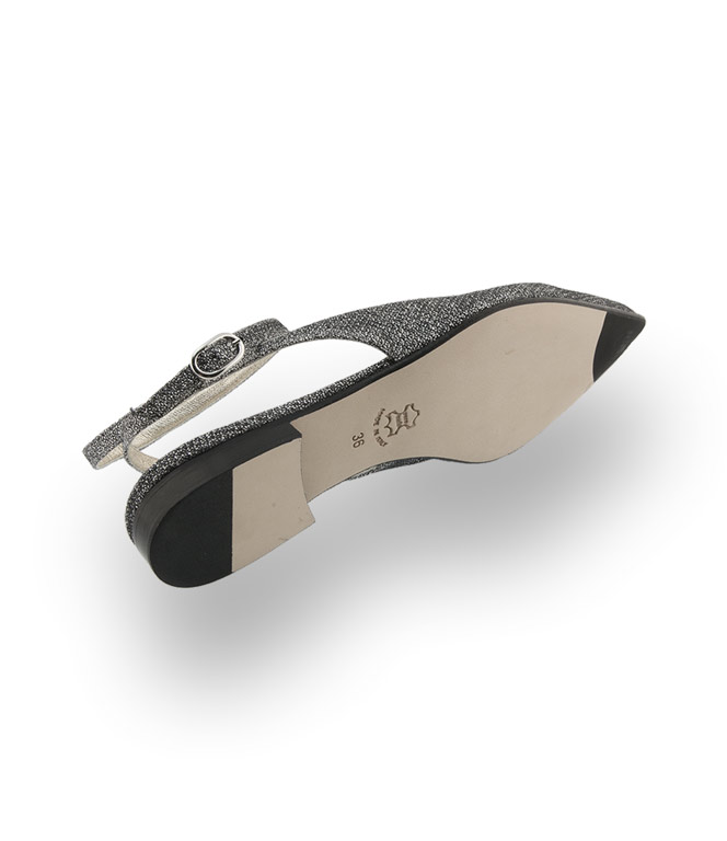 Caiman Schuhe spitzer Ballerina- Sling in schwarz silber Glitter mit Fesselriemen