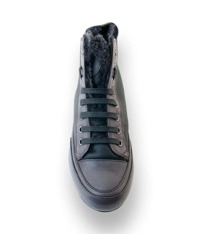Sneaker von Candice Cooper mit der typischen Sohle haben sich schon lange auf dem Modemarkt etabliert. Traumhaft weiches gewachsenes Lammfell, das Fell blitzt hervor und eine sehr schöne Farbkombi machen dieses Modlle zum Alltagsschuh. Die Einlage lässt sich austauschen.