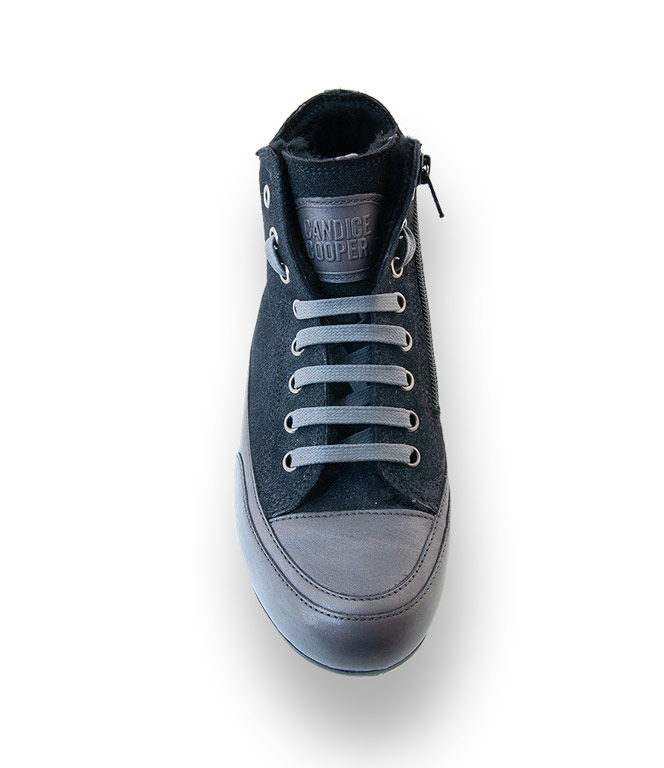 Schwarzes Veloursleder im Metalliclook mit der typischen Sohle im grauem Leder ist nicht nur weich und bequem. Die kuschelige Lammfellfütterung sorgt für warme Füße und die Lammfelleinlage lässt sich austauschen. Candice Cooper Sneaker sind die perfekten Begleiter in allen Lebenslagen. Schnürung für die individuelle Weiteneinstellung und ein Reißverschluß für den schnellen Schlupf.