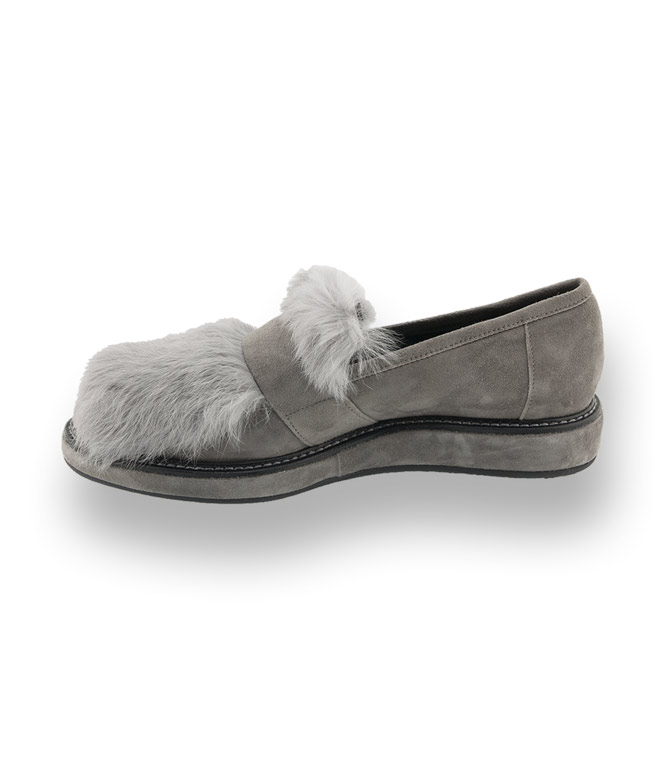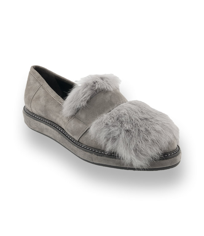 Loafer von Cenedella - Via Mercanti sind begehrte Allrounder und bekommen zu den verkürzten Hosenformen ihren sensationellen Auftritt. Der winterliche Hingucker ist die Felllasche. Der Slipper aus hochwertigem grauen Veloursleder, einem 2cm hohen Keil und einer Gummilaufsohle ist mit weichem Ziegenleder gefüttert. Ein schwarzer Zierrahmen wirkt edel und der angesagte Loafer bekommt seinen eigenen Charm. Sportlich, Edel in gehobener Ausführung.