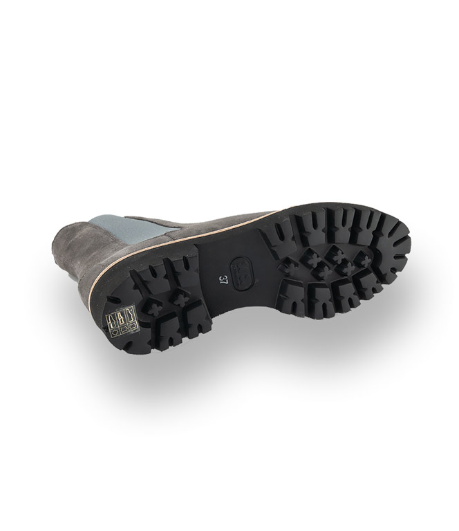 Weiches graues Veloursleder und kuscheliges Lammfellfutter verwöhnt ihre Füße. Die federleichte Profilsohle bietet sicheren Halt und Schutz vor Nässe. Die Gummieinsätze und die Schluppe im Fersenbereich erleichtern den Einstieg. Der sichtbare Rahmen mit dekorativer Steppnaht sticht sofort ins Auge und ist ein Indiz für die hochwertige Verarbeitung.