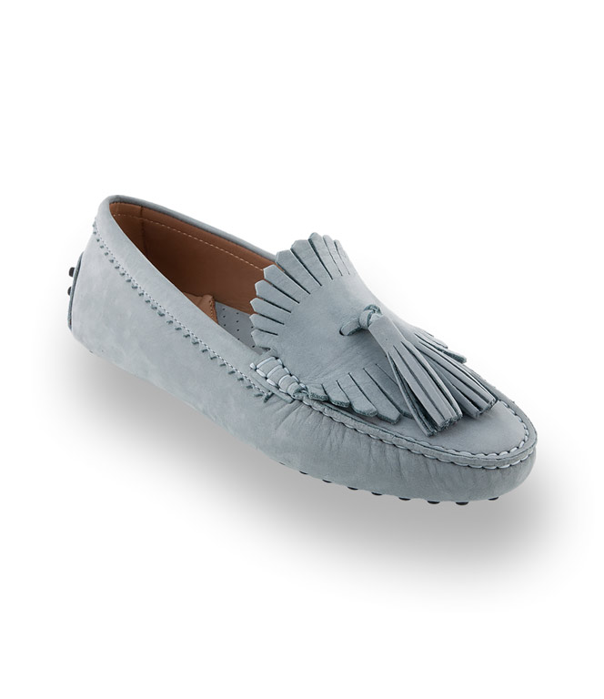 Mokassin von Patrizio Dolci aus feinstem Nubukleder mit zwei Quasten und Fransen in hellblau. Die Farbpalette ist groß, sie reicht von klassisch Schwarz Weiß bis zu aufregende Knallfarben oder zarten Pastells. Wählen Sie ihren Favoriten. Patrizio Dolci das italienische Label verbindet Chic mit Bequemlichkeit. In schöner Verarbeitung mit einem weichen Lederfutter, einer extrem flexiblen Noppensohle und einem 1cm hohen versteckten Keil verwöhnen Sie ihre Füße. Farblich abgestimmt zeigt sich die Gelenkstütze und die Noppen an der Laufsohle. Zeitlos, unkompliziert mit hohem Tragekomfort.