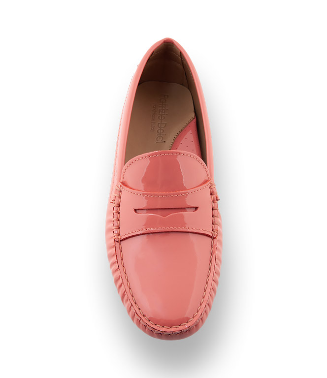 Klassischer Mokassin von Patrizio Dolci in altrosafarbenen Lackleder mit Gumminoppen als Laufsohle. Die bequeme, flexible Noppensohle und der versteckte 1 cm hohe Keil im Fersenbereich, sorgen für traumhaftes Tragevergnügen. Der Damenschuh ist durchgehend ledergefüttert und mit einer farblich abgesetzten Gelenkstütze ausgestattet. Weiches, strapazierfähiges Lackleder in altrosa.