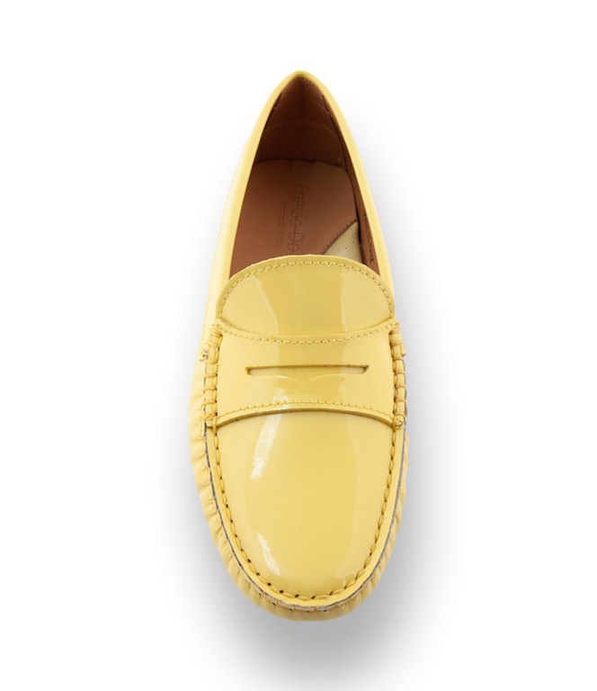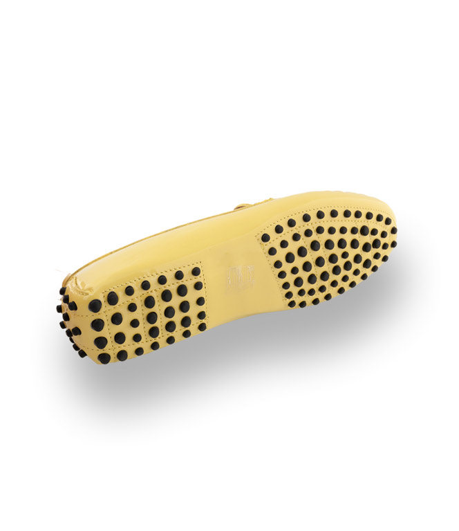 Klassischer Mokassin von Patrizio Dolci in gelb Lackleder mit Gumminoppen als Laufsohle.