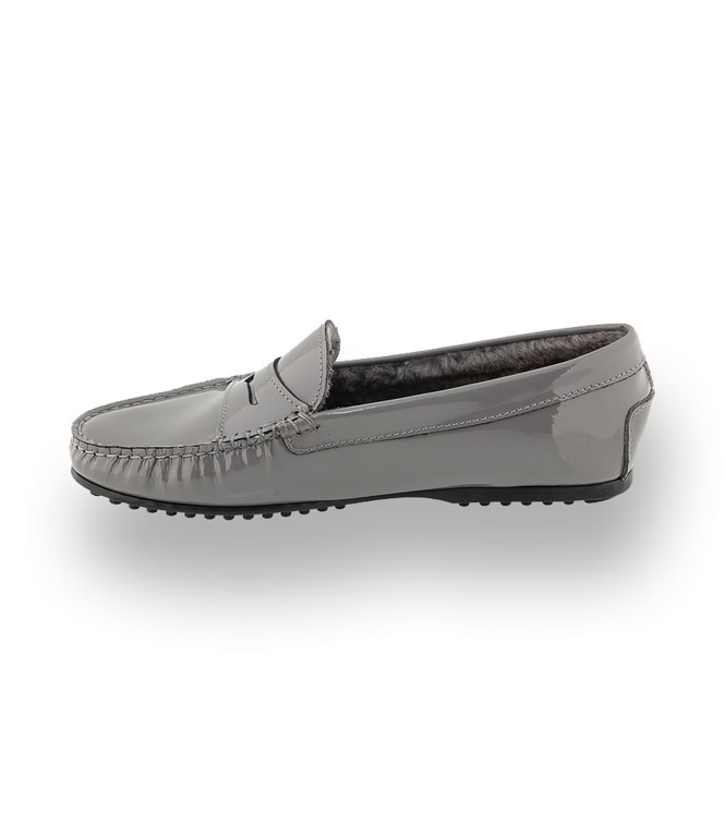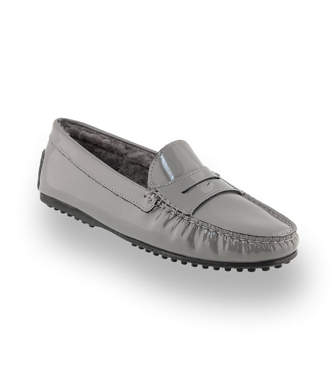 Mokassin von Patrizio Dolci - Confort grau Lack mit Lammfellfutter