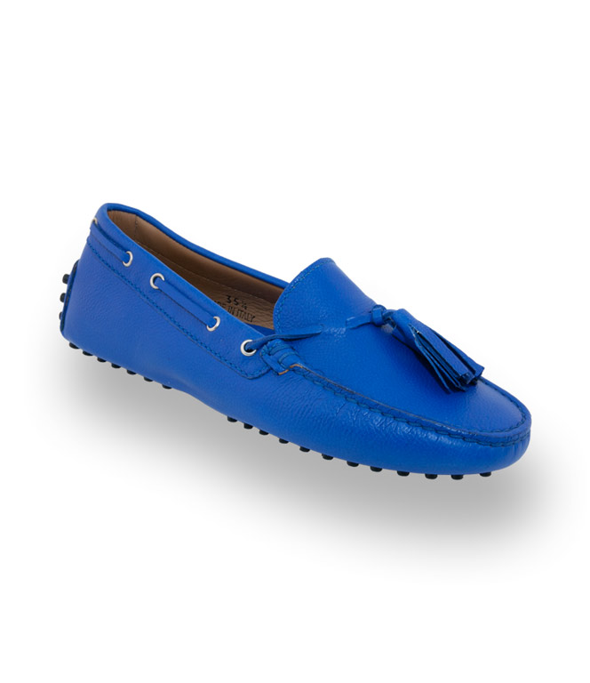 Mokassin von Patrizio Dolci aus feinstem Kalbsleder mit zwei Quasten in royalblau. Die Farbpalette ist groß sie reicht von klassisch Schwarz Weiß bis zu aufregende Knallfarben. Wählen sie ihren Favoriten. Patrizio Dolci das italienische Label verbindet Chic mit Bequemlichkeit. In schöner Verarbeitung mit einem weichen Lederfutter, einer extrem flexiblen Noppensohle und einem 1cm hohen versteckten Keil verwöhnen Sie ihre Füße. Farblich abgestimmt zeigt sich die Gelenkstütze und die Noppen an der Laufsohle. Zeitlos, unkompliziert mit hohem Tragekomfort.