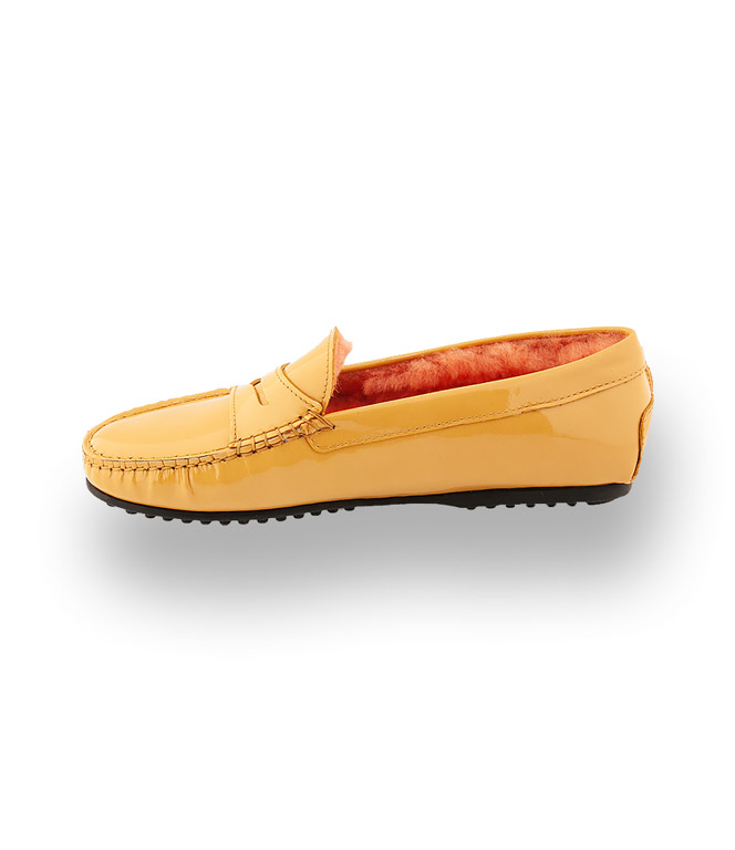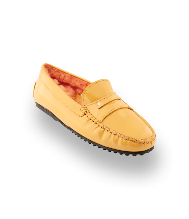 Mokassin von Patrizio Dolci - Confort gelb Lack mit Lammfellfutter