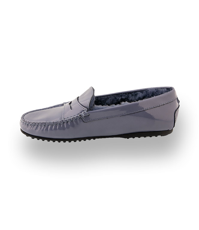 Mokassin von Patrizio Dolci - Confort himmelblau Lack mit Lammfellfutter