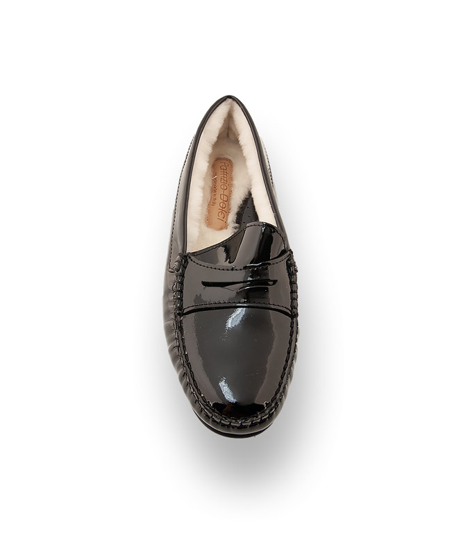 Schwarzes Lackleder und kuscheliges helles Lammfellfutter und der versteckte 1 cm hohe Keil im Fersenbereich, sorgen für ein optimales Tragevergnügen. Die flexible, Gummilaufsohle mit den kleinen Noppen garantiert ihnen Rutschsicherheit. Der Slipper aus weichem, strapazierfähigem Lackleder mit dem klassischen Pennysteg und den dezenten Mokassinnähten ist zeitlos und der perfekte Begleiter auf Reisen und im Alltag. Das edle Lammfellfutter verwöhnt sie an kalten Wintertagen.