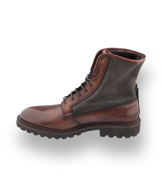 Brauntöne gewinnen in der Männer-Schuhmode an modischer Bedeutung. In Cognac bekommt die Stiefelette von Cordwainer by Pertini eine lässige Wirkung. Mit einem dunklen sportlichen Anzug als auch zur Casualkleidung ist die Stiefelette ein stilsicherer Partner. Aus edlem weichem Kalbsleder und feinstem Lederfutter sorgt dieser Bootie für einen hohen Tragekomfort. Die leichte Gummisohle mit einem rutschsicheren Profil und vorallem der Schaft aus gewachsenen Lammfell ist ideal für die kalte und nasse Jahreszeit.