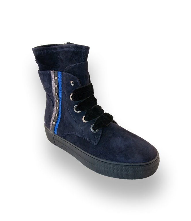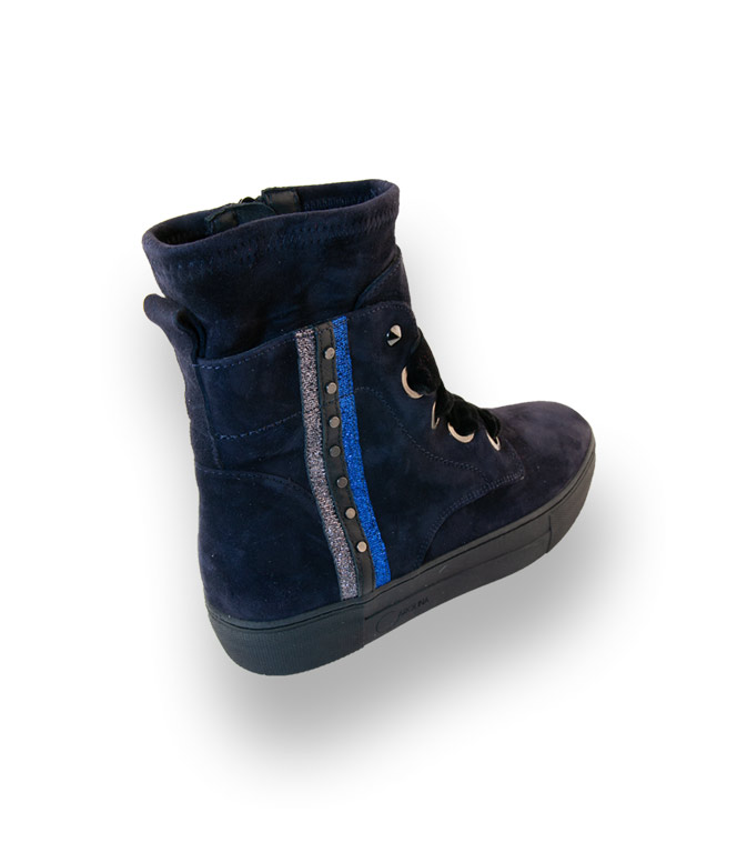 Donna Carolina Boots in blau velours mit Streifen und dicker Sohle